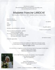 C’est avec une profonde tristesse que nous vous faisons part du décès inopiné de Francine Laroche, présidente du RBKC et notre ancienne secrétaire